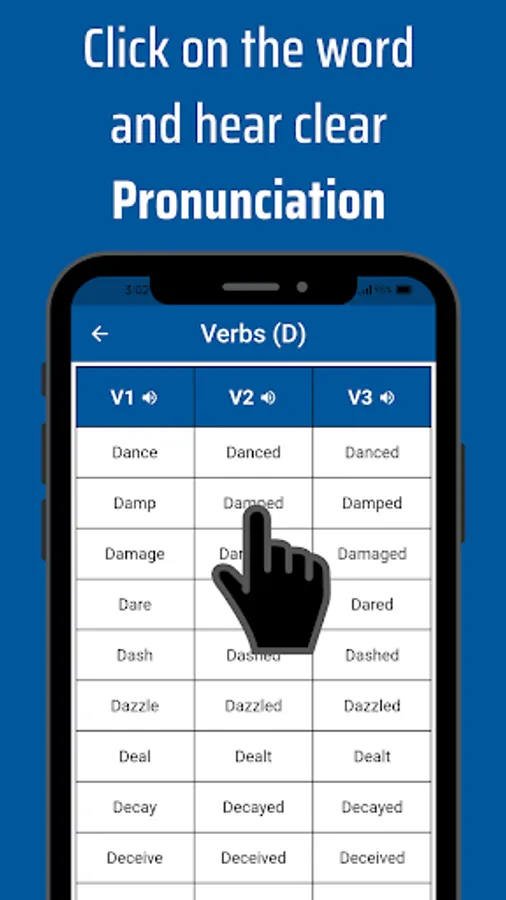 English Verbs helps you to learn listening, pronouncing, reading the verbs. Here, You can explore 1300+ first, second and third form of verbs with listen to the pronunciation of the all these verbs.