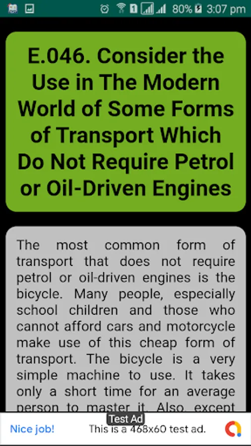 Consider the Use in The Modern World of Some Forms of Transport Which Do Not Require Petrol or Oil-Driven Engines