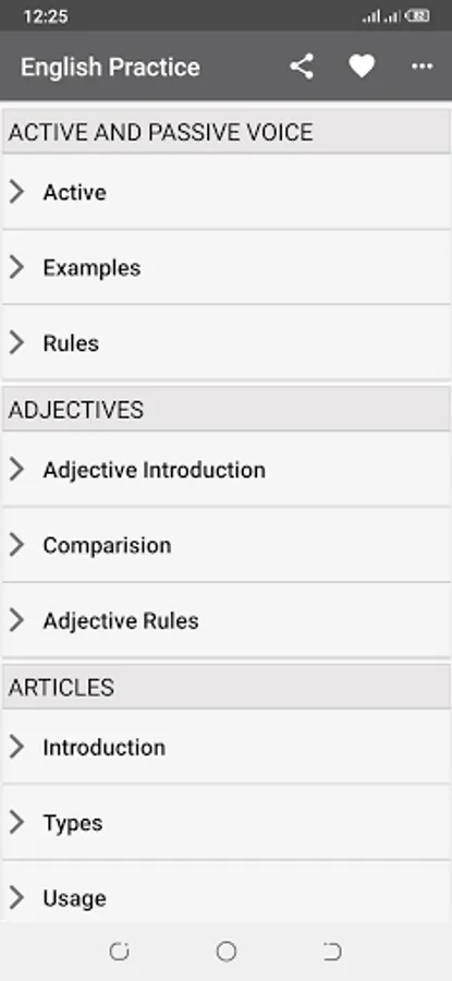 English Practice application also has many English Lesson for you. Practice them everyday to improve your vocabulary