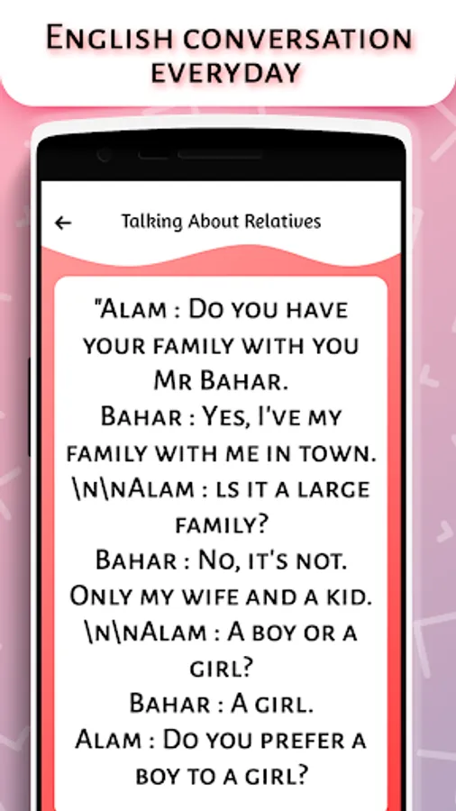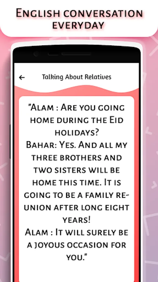 Learn to speak English through hundred of real-life conversation dialog is the most effective way to learn English. Emphasize listening, the app helps you to improve your listening skill, pronunciation, know how to ask and answer in daily talking.