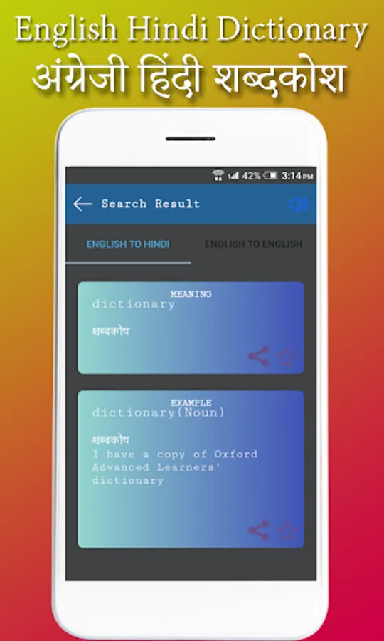 Dictionary :- English To Hindi Dictionary is a quick reference guide with more than one meaning available for almost all words.