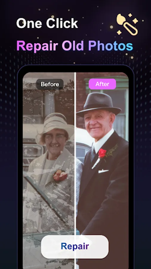 Relive your memories from damaged, blurry, old, black & white photos with one touch!