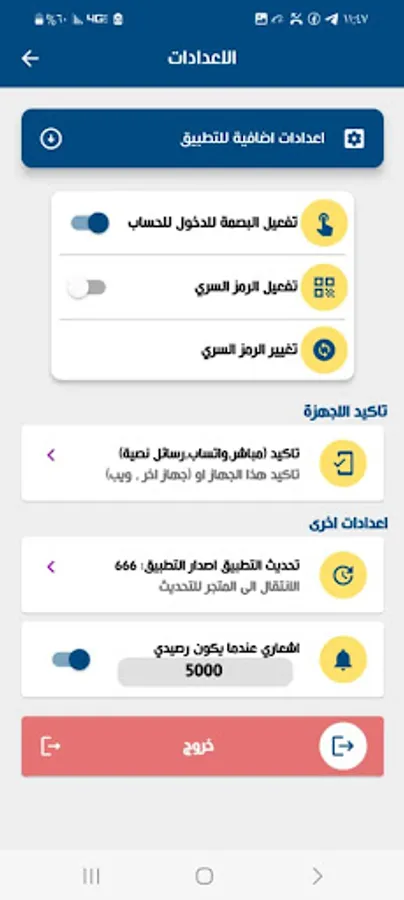 The application's implementation network is the fastest in carrying out financial transactions for clients and completing them in fractions of a second and giving responses by processing or canceling them so that the client can follow the status of his transactions through the application with ease. The application allows the client to increase the level of security and privacy for his account by activating security codes From the settings tab.