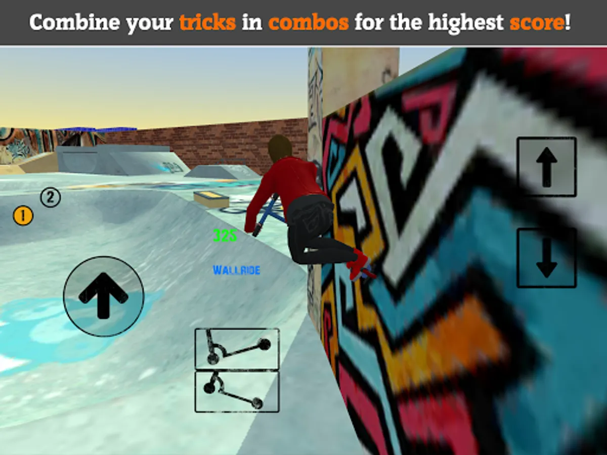 Ride big ramps and get crazy air, or get technical with street skating. Do huge flips and stunts, or chain together awesome combos with manuals, grinds and wallrides.
