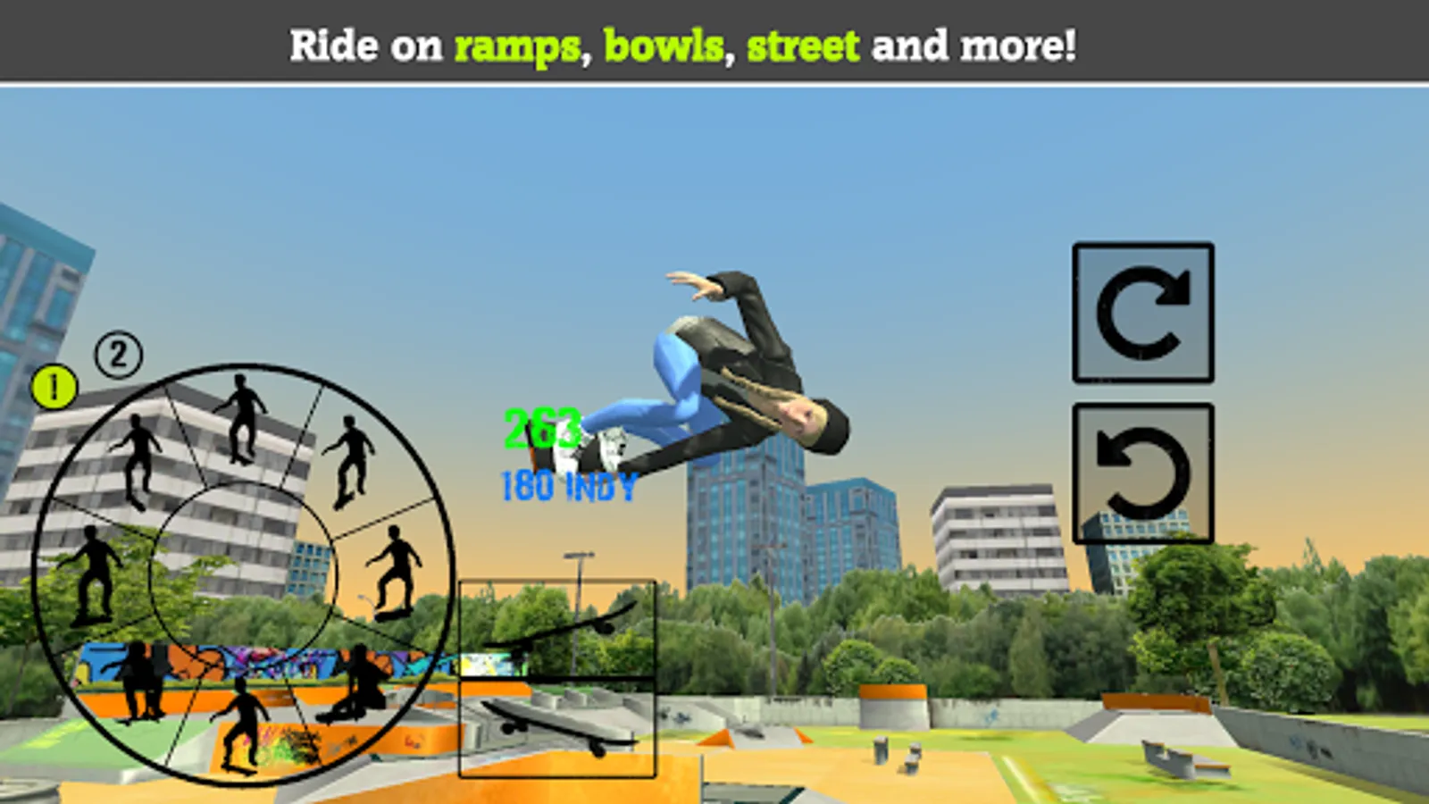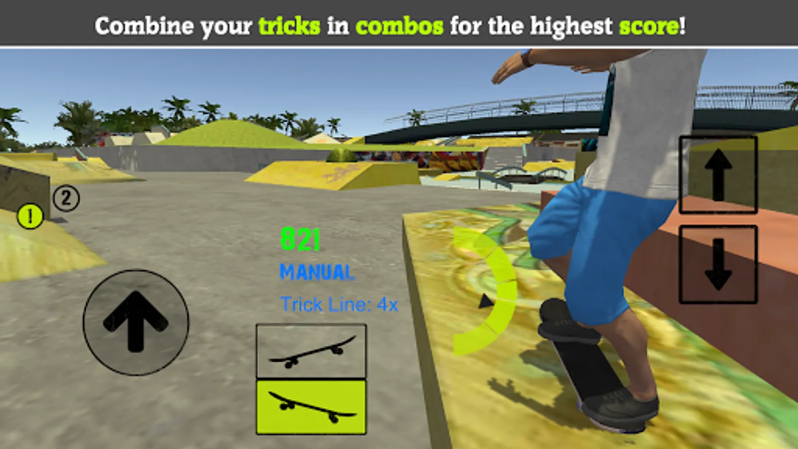 Ride big ramps and get crazy air, or get technical with street skating. Do huge flips and stunts, or chain together awesome combos with manuals, grinds and wallrides.