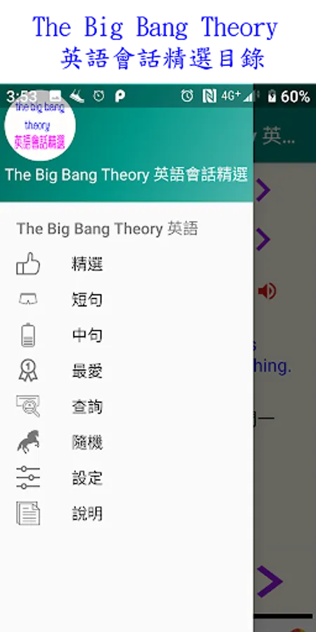 2.App 分為精選、短句、中句、最愛(註記)、查詢、隨機、設定、說明。