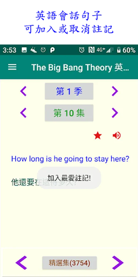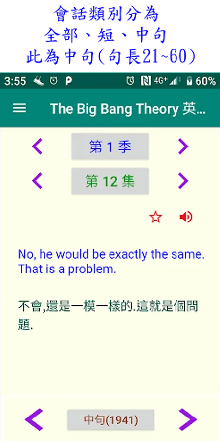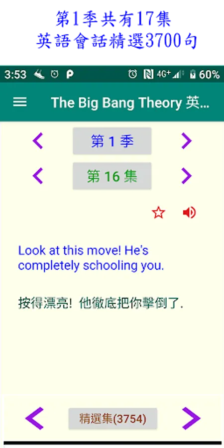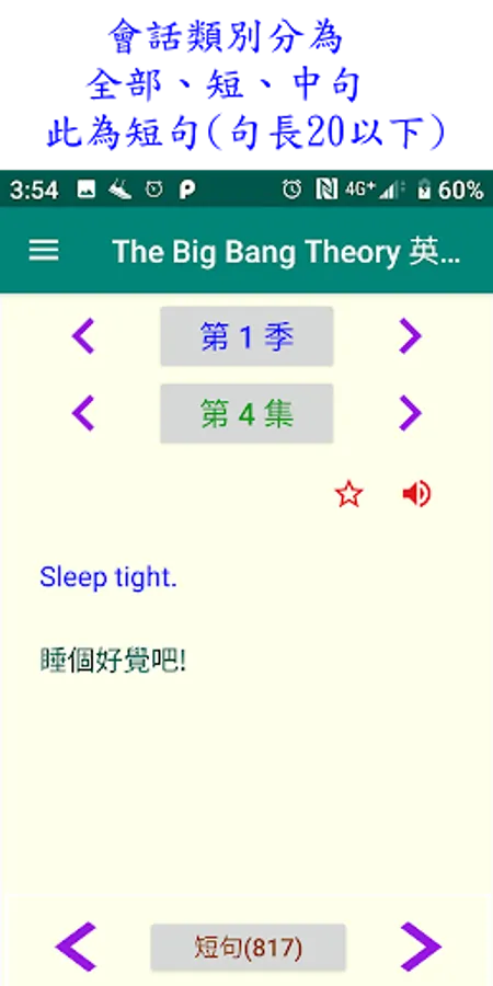 1.目前 第一季共17集3574句. (全部共十二季,將分季逐集完成)。