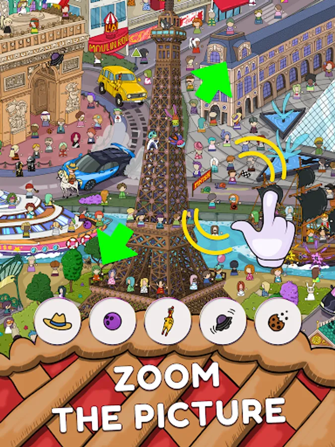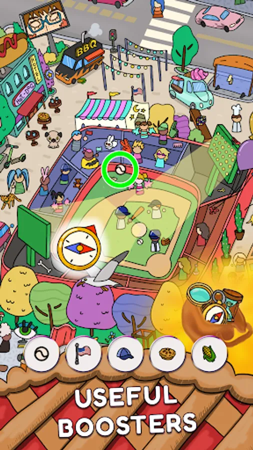 An item can be everywhere – on a rooftop, in someone's pool, or under the feet of a green-haired baseball player – waiting for you to find it. It’s way more entertaining than other games where you need to seek the hidden objects yet not too difficult.
