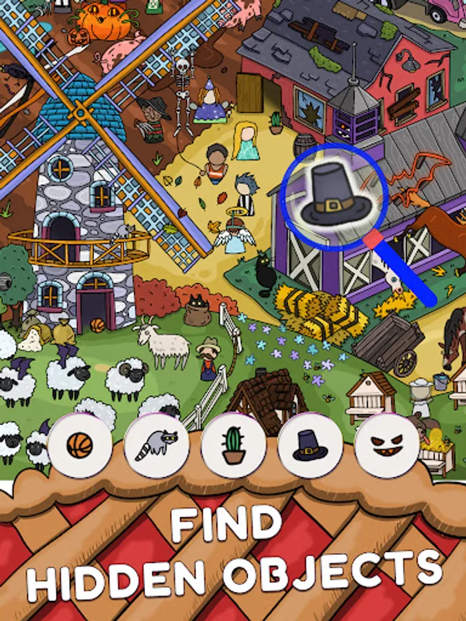 - INTUITIVE GAMEPLAY. Seek the hidden objects on the map and tap on them once found. Can’t see an item? Use a hint and find out where the thing you’re looking for is.
