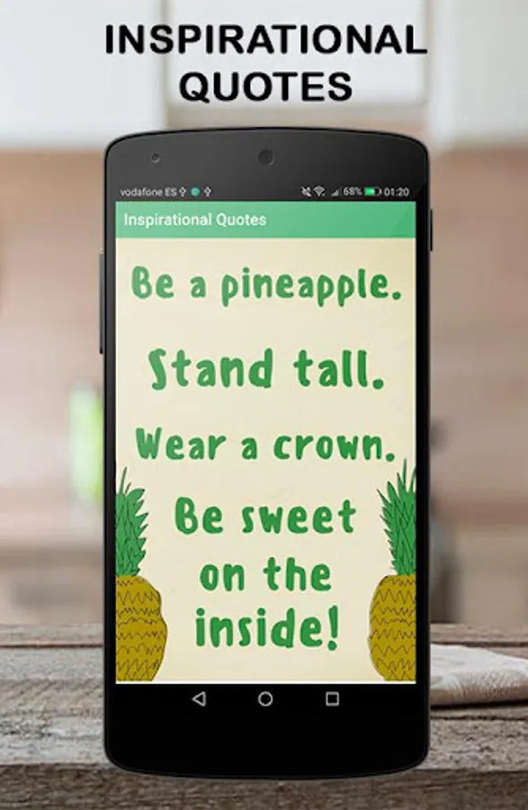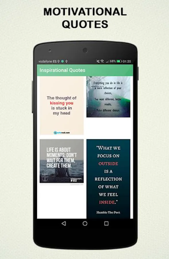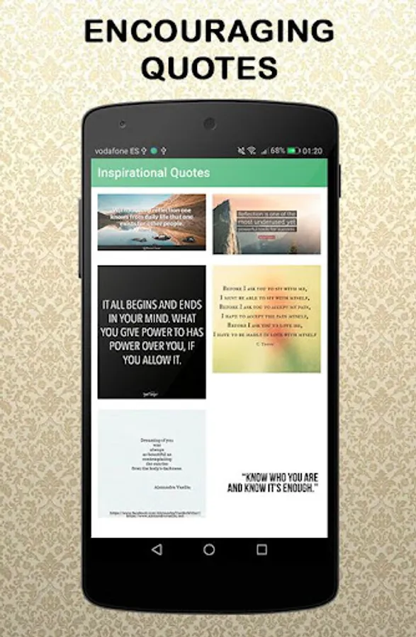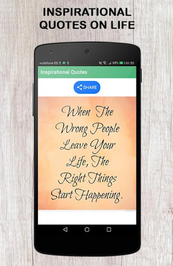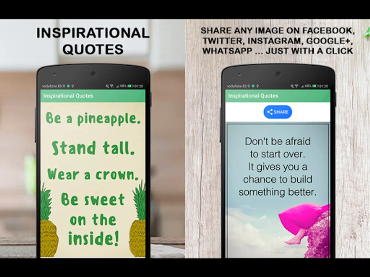 Inspirational quotes is an Android application containing hundreds of wisdom sayings and proverbs that will make you think and reflect. Inspirational quotes written on beautiful images that you can download and share with your family and friends with a single click. Share wisdom sayings and proverbs on your social media profiles etc.