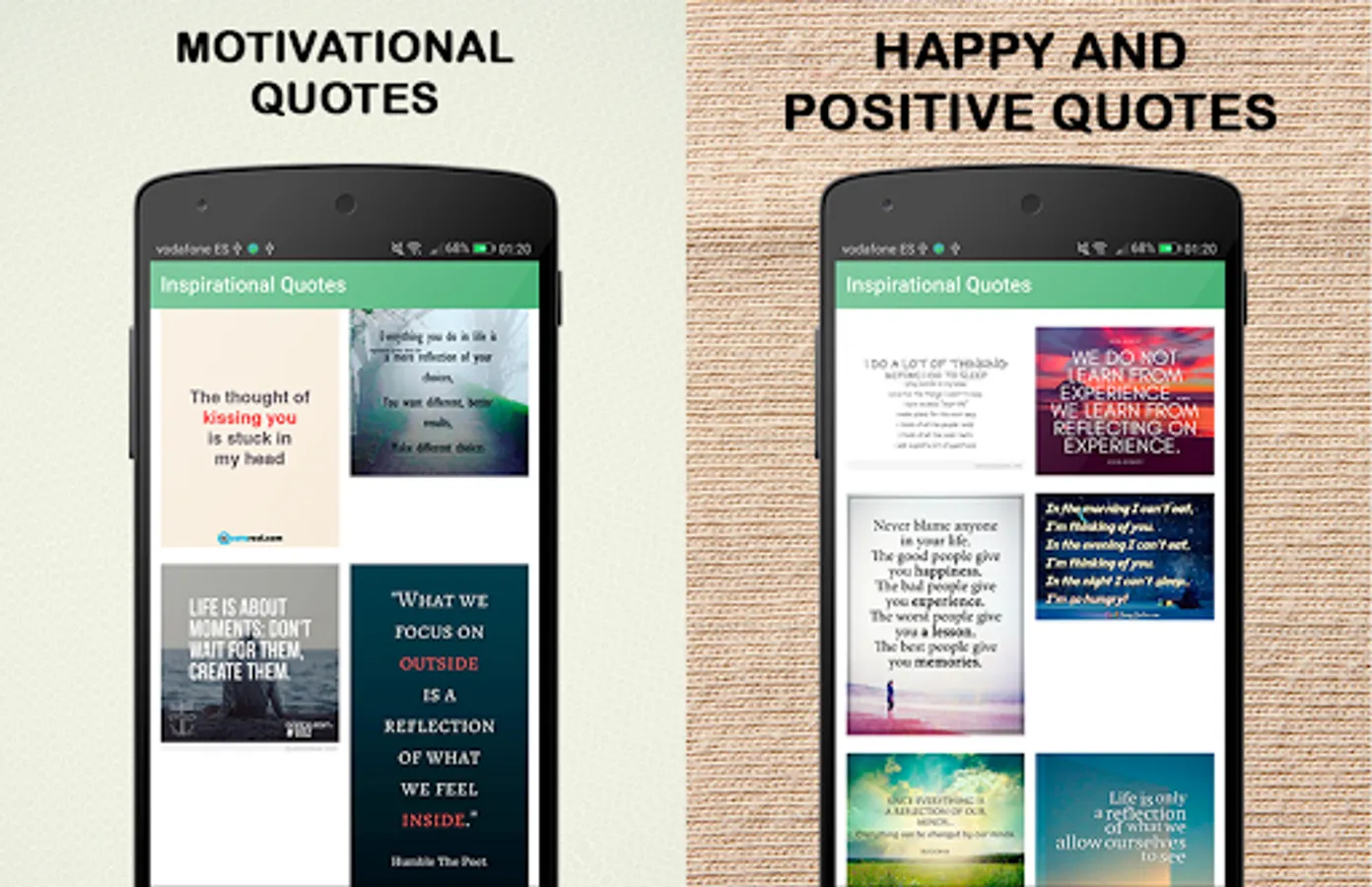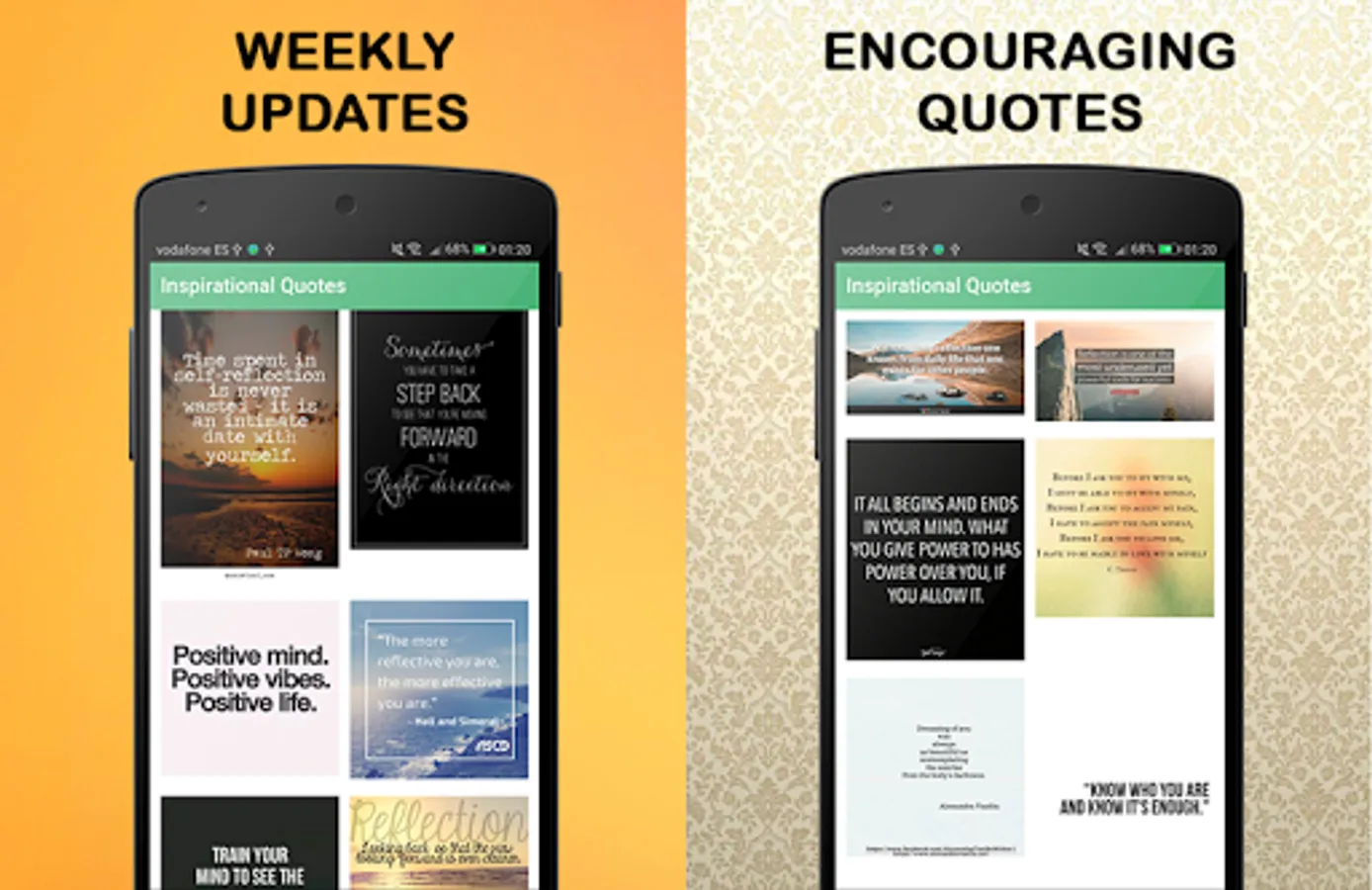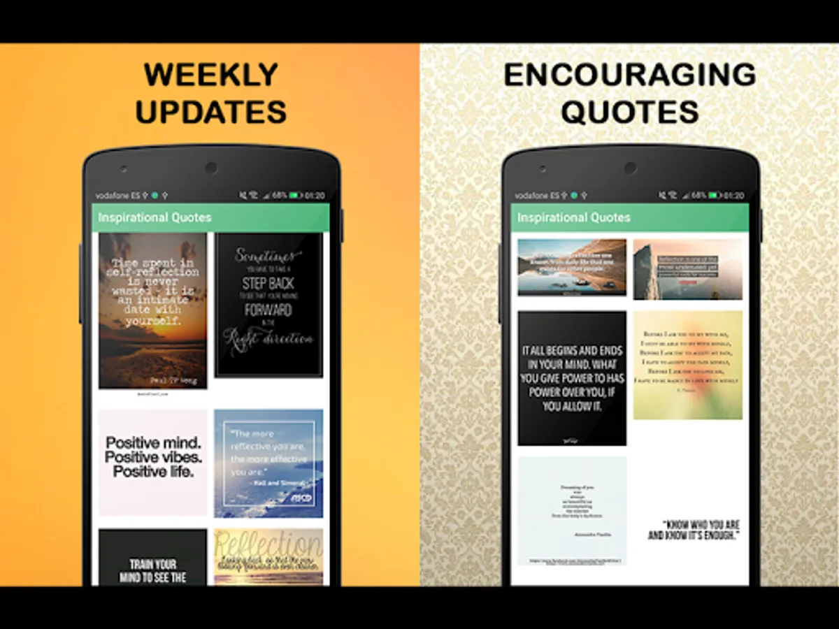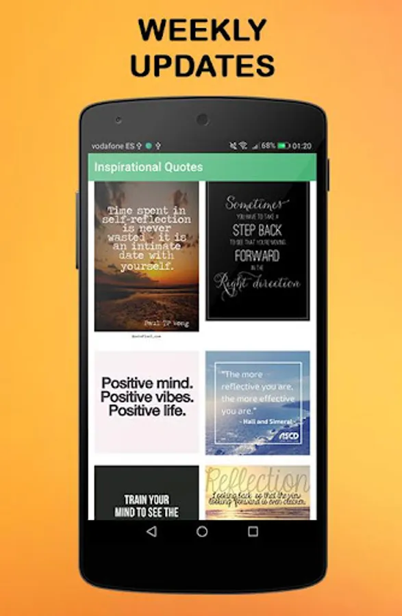 This application works as an image gallery. However, images are updated automatically every week! Access daily to discover new content and get your daily life quotes! Images are available to use as wallpaper or as captions for instagram.