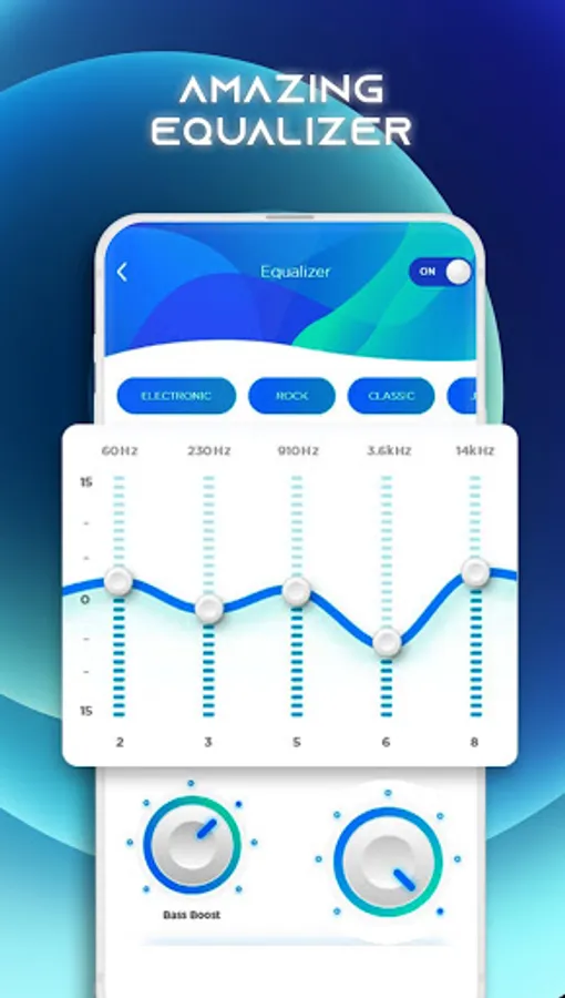 Music Player for with Powerful Equalizer is 5 bands equalizer and pre-set music tone styles for your choice like Hip hop, Jazz, Pop, Rock, Normal, Classic, Dance, Folk, etc Player music.