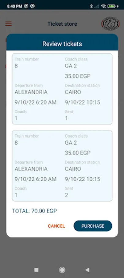 The user of the application can purchase an electronic ticket for railways, the ticket can be read electronically by the electronic gates and presented for validation by the controller.