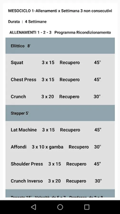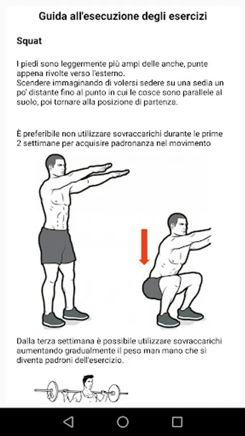 In support of each mesocycle there is a section dedicated to the explanation of the exercises which includes in addition to the detailed description also a series of images that illustrate the correct execution of the exercises.