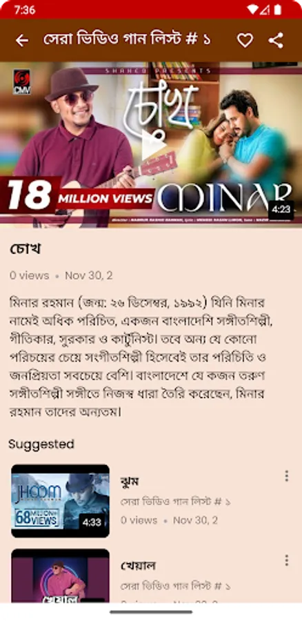 Basically, Minar Rahman music app all content is collected from various Bengali music video popular channels. We hope that all Bangla Music Videos are entertaining that's keep you entertained.