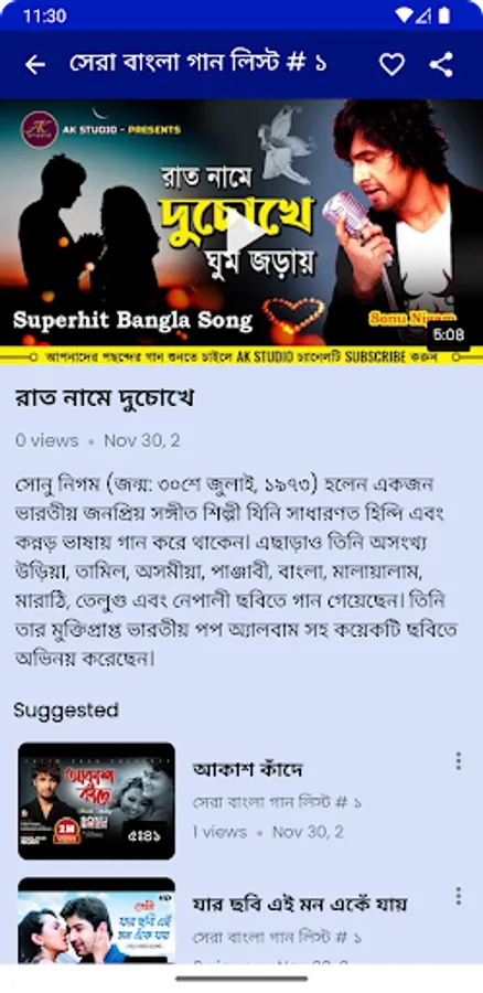 Basically, Sonu Nigam Songs app all content is collected from various Bengali popular channels Sonu Nigam Songs is the source of entertainment that's keep you entertained and also Sonu Nigam Songs application for those people who like Bengali Sonu Nigam video songs.