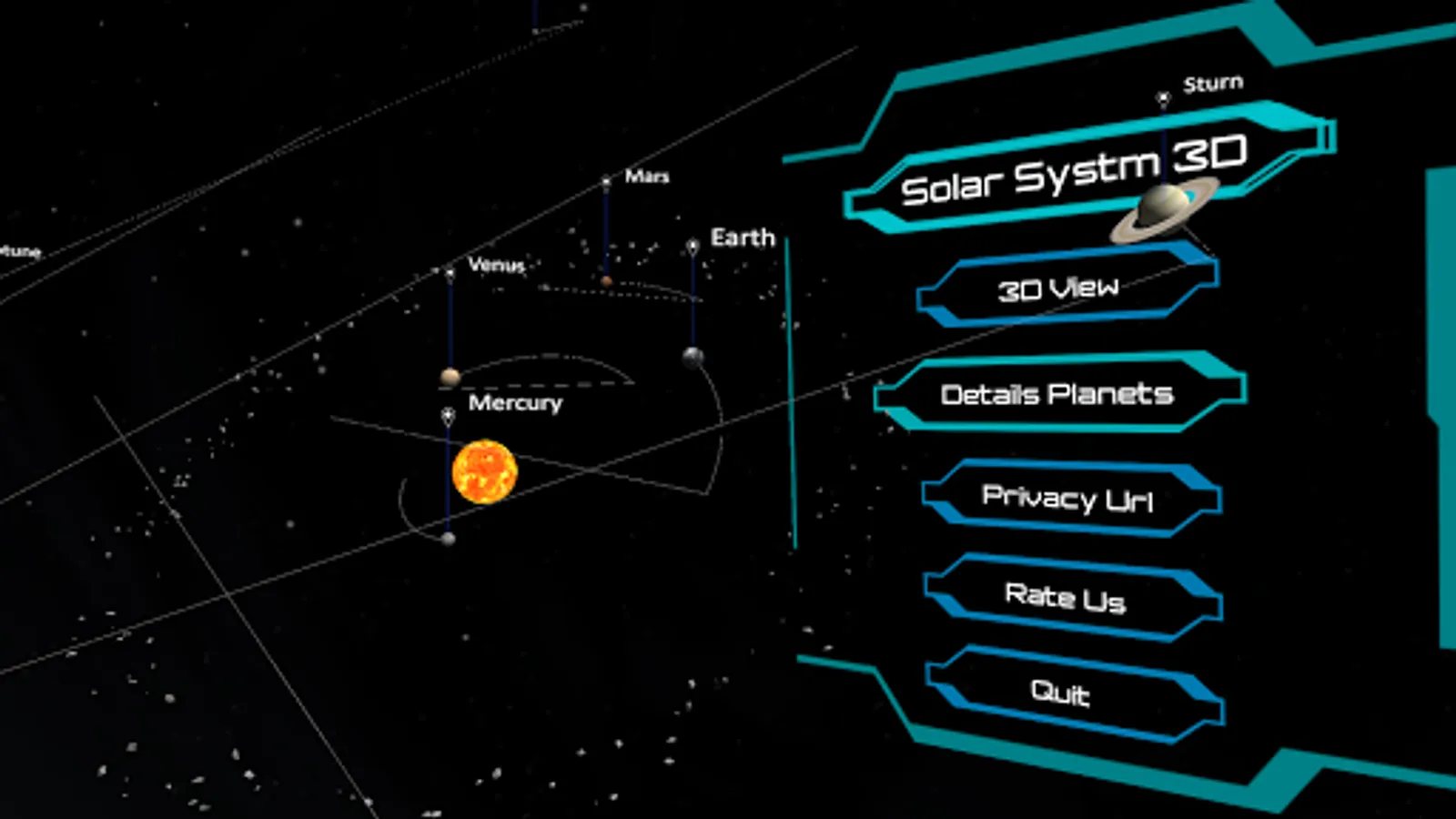 • Solar system simulator 3D: realistic space view with real-time positions, order, size, inner structure of Solar system planets and moons, theirs orbits, stars, comets, satellites and other celestial bodies.