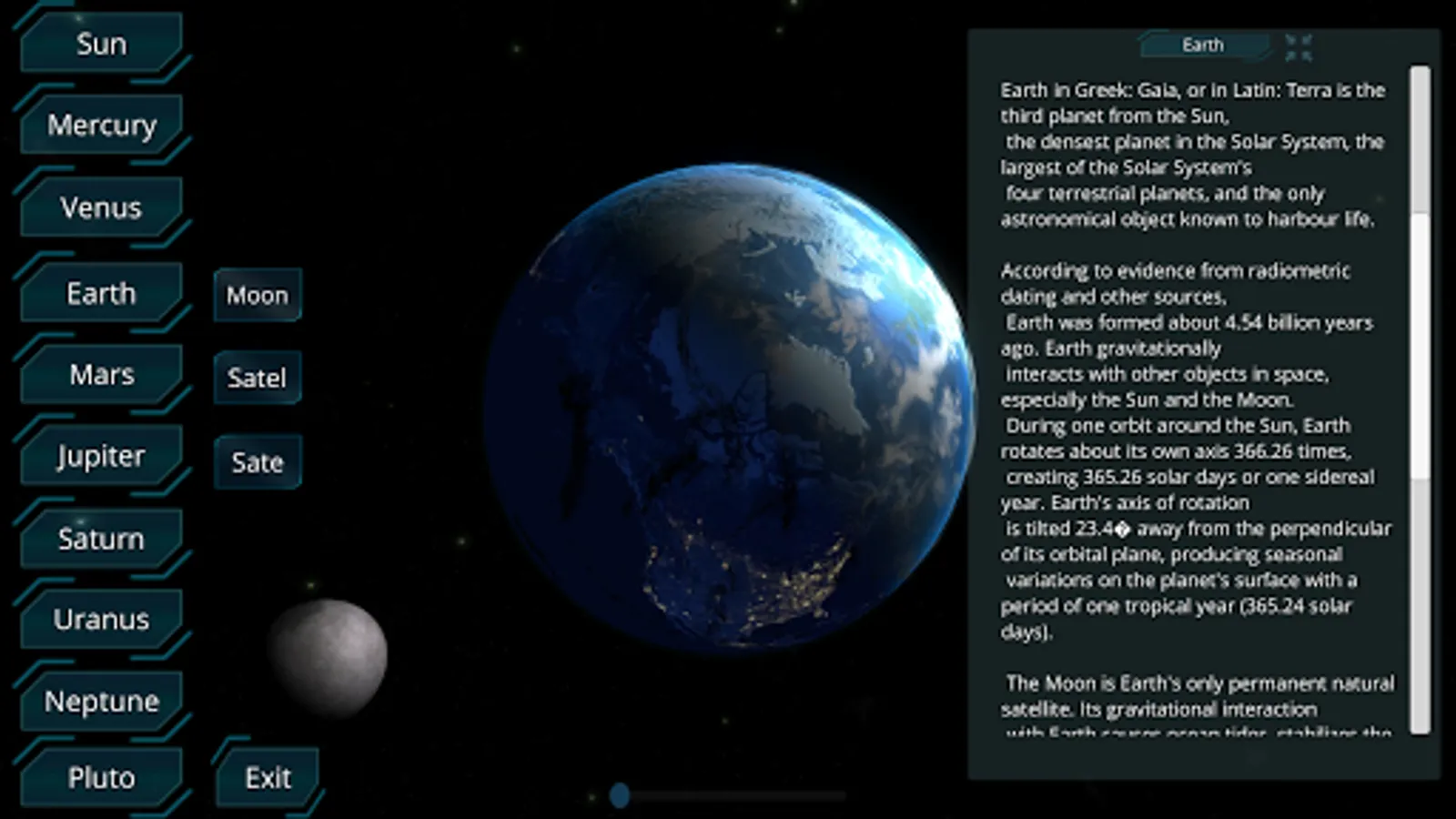 Solar System Planets with 3D Simulation contains many views and celestial simulations, the educational app brings you the simple way to study, research and understand and give you a closer to the furthest reaches of our world and lets you experience a lot of fantastic space science.