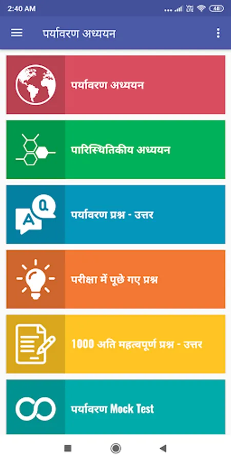 This Environment & Ecology: पर्यावरण और पारिस्थितिकीय Application is Desinged for all the Competitive Examination like UPSC, IAS, IPS, IFS, IBPS,UPSSSC,SSC,POLICE SI/CONSTABEL/ VDO, Lekhpal, UP Nagar Nigam, Junior Assistant, Junior Engineer, Stenographer, Computer Operator, Forest Guard, Instructor, Driver, Lab Technician, Accountant, Technical Assistant, Urdu Translator, Excise Constable, Revenue Inspector, And all State Competitive Examination .