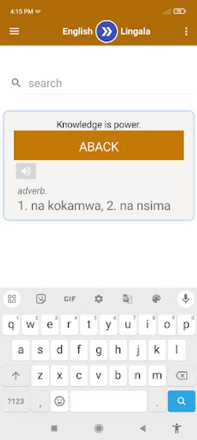 English To Lingala Dictionary is a dictionary for English to Lingala language where you can search any English words for their exact meaning in Lingala language.