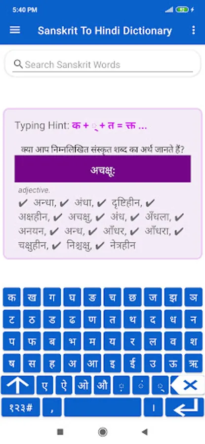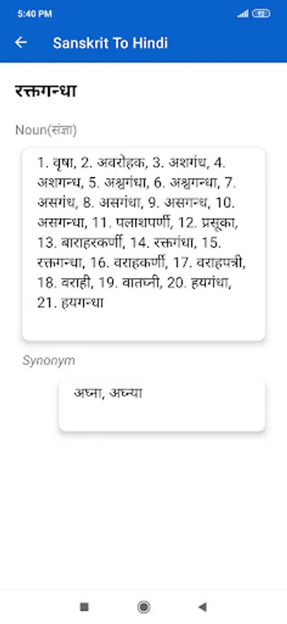 Sanskrit To Hindi Dictionary is a dictionary for learning Sanskrit language.