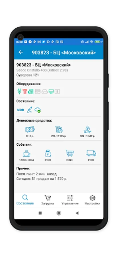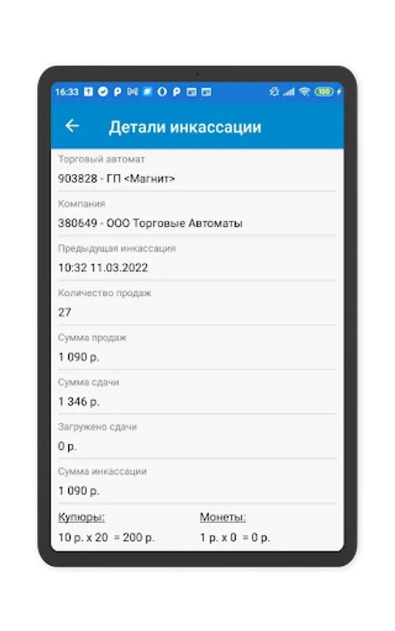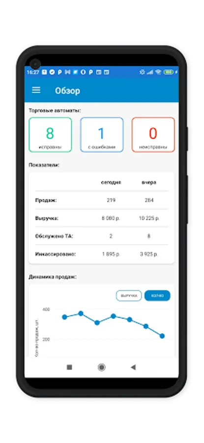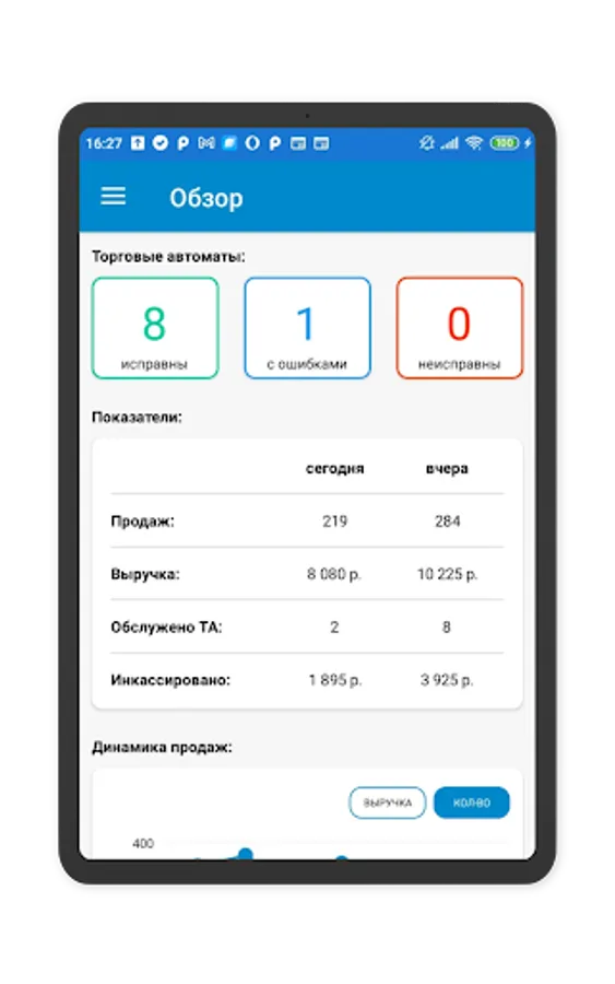 - full control over the operation of the vending machines: the condition of the vending machine and equipment, the amount and amount of money for collection and delivery;