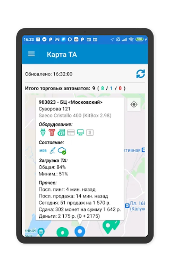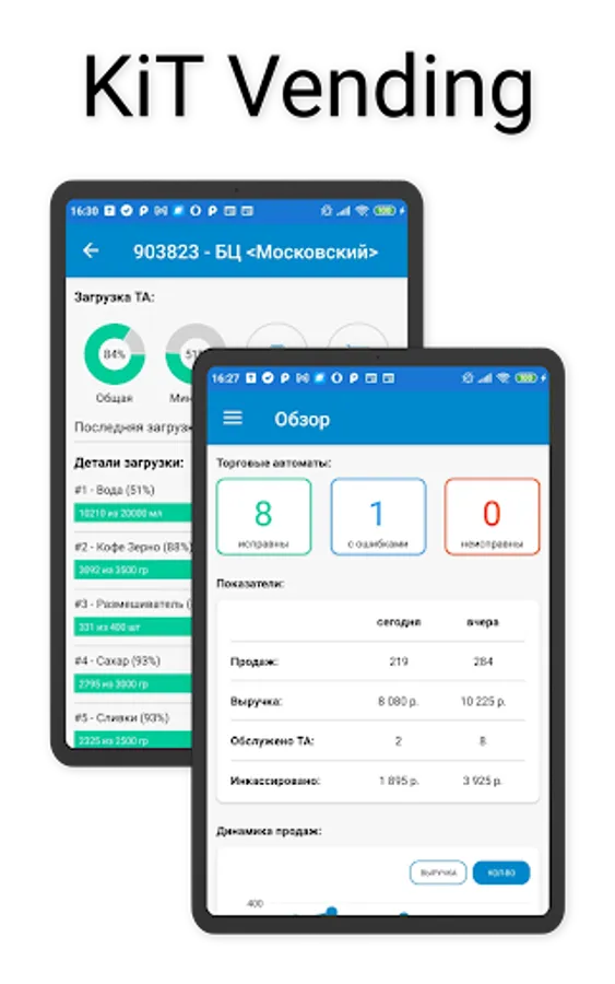 The KiT Vending mobile application is an indispensable assistant for the owner or operator of vending machines/coffee points.