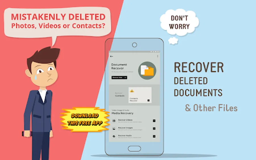 Download the all new Files & Document Recovery app for FREE and never worry about deleting Files, Document, Photos, Videos or Contacts mistakenly.