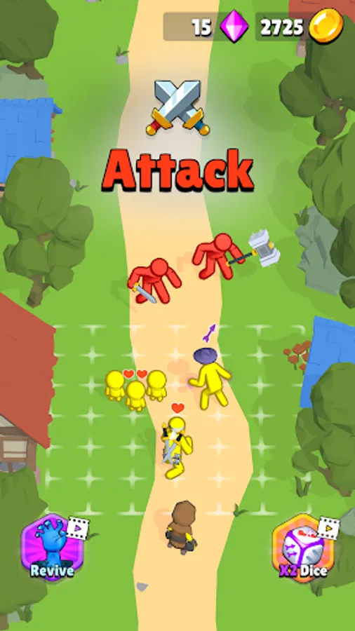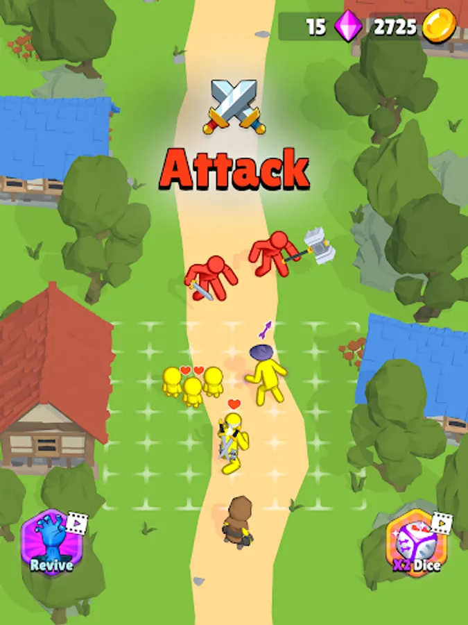 Throw the dice and turn them into warriors, mages, or archers! The more dice you throw, the more stickman warriors you could summon to your army. Become the real army commander and prepare for each battle!