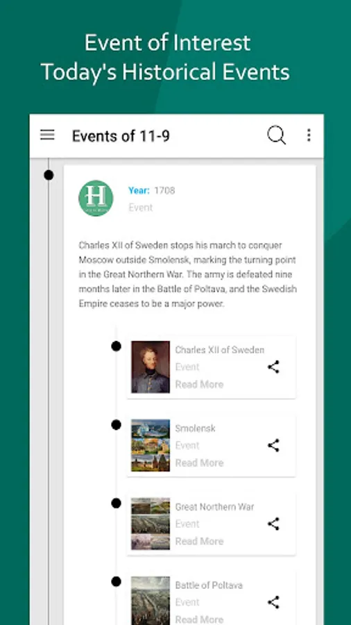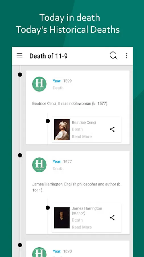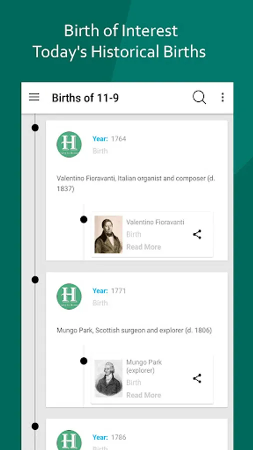• Direct linking to browser: All events, births and deaths are directly linked to the correspondent Browser articles redirect towards the browser.