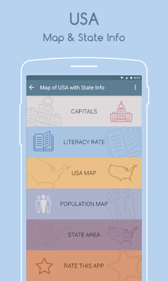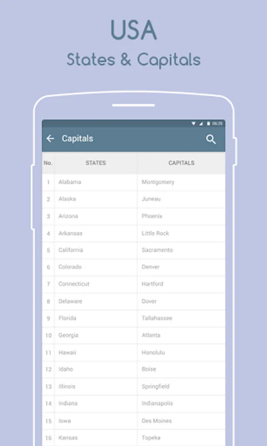 This Map of USA and Capital or Map of United States & Capital or Map Of USA is a one stop guide to all the Geographical Information about USA, including Population of each State and Capital Cities. Say goodbye to your Atlas or USA Atlas and get the all new USA Atlas or USA Map & Capital app on your android device for FREE!!