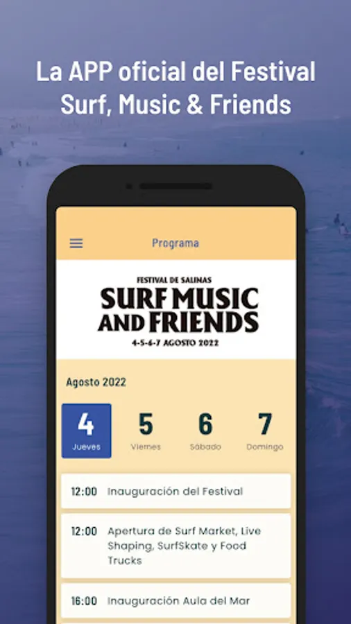 Official app of the Surf, Music & Friends Festival, with this app you can buy your drink without queuing, check the program and access draws.