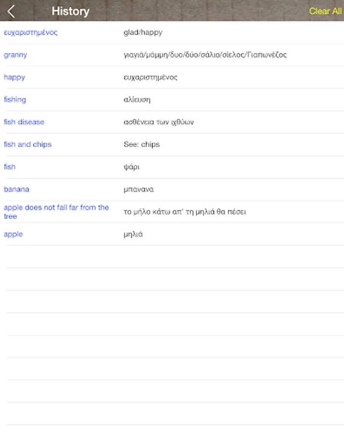In the dictionary, you can search and translate in two direction, i.e. English to Greek or Greek to English. More than translation, you can learn to speak the phrases or vocabulary in both languages of correct grammar. This app is the best for languages leaner, beginners and kids, Bring the app with you when you are having lessons or courses.