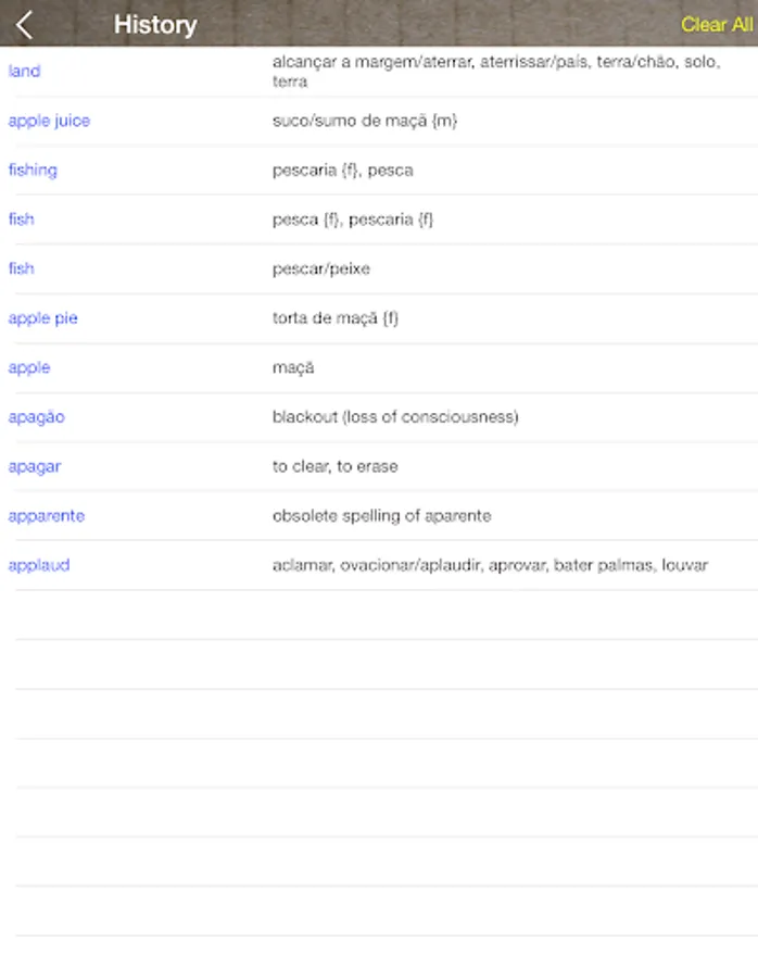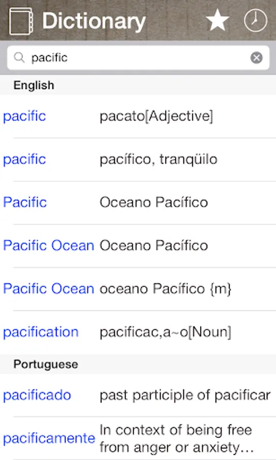 In the dictionary, you can search and translate in two direction, i.e. English to Portuguese or Portuguese to English. More than translation, you can learn to speak the phrases or vocabulary in both languages of correct grammar. This app is the best for languages leaner, beginners and kids, Bring the app with you when you are having lessons or courses.