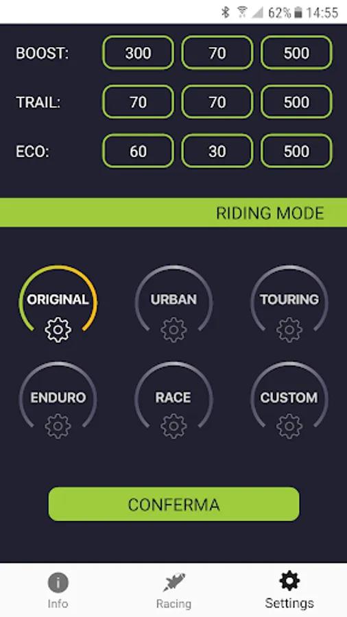 To customize the engine mapping directly from the app you have to go to one of our dealers to enable Race Unlock function. You can choose from a series of preset mappings or you can create your own mapping.