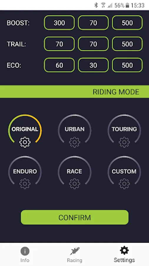 After making the change, it will be possible customize the engine mapping parameters directly from the app. You can choose from a series of preset mappings or create your own mapping.