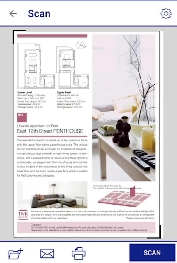 • Capture a document with your device camera, format, enhance, then save, ready to print