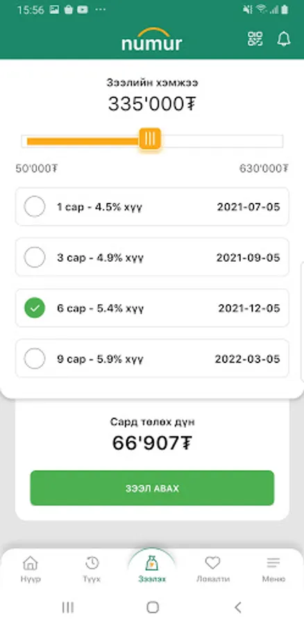 1. Loan amount: 50,000₮ - 2,000,000₮