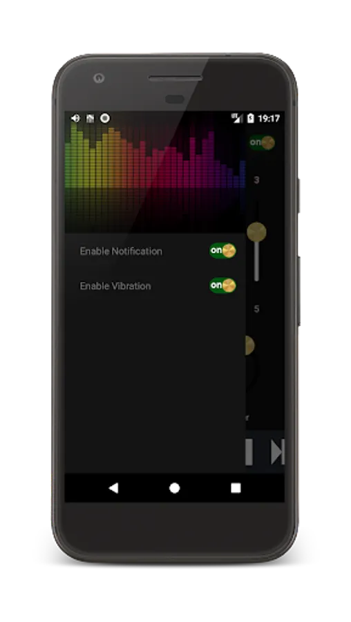 In settings, you can enable notifications, then an icon of “Equalizer with Bass Booster for Headphones” will appear in a notification panel and will be there while the app is on. Also, you can enable vibration, then the phone will vibrate when you touch the screen.