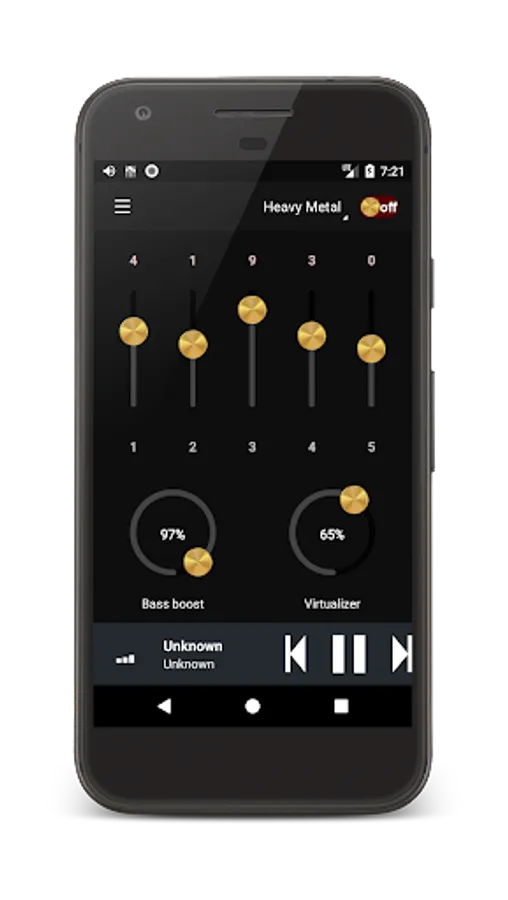 “Equalizer with Bass Booster for Headphones” has Bass Booster. Control Bass for Hip-Hop music, music with beats, music with drums. Also regulate virtualizer, it will give music atmosphere of immersion, 3-D sound.
