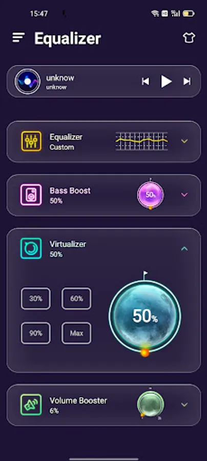 With our multi-function equalizer, you can create as many sound effects as you want, boost bass, amplify volume, listen to 3D surround sound, heavy bass and mega volume . Download Equalizer Bass Booster now and make your phone a better audio player tool!