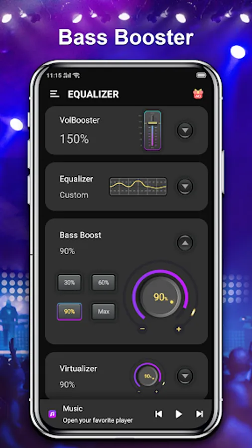 Use bass boost to adjust the bass & listen to heavy bass for headphone