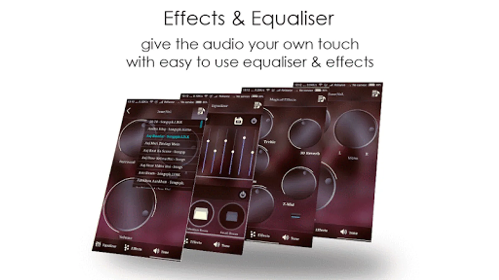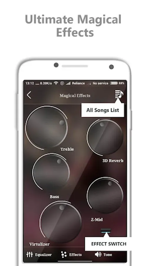 ☆☆ Audio Effects : Bass Booster, Treble Booster, 3d Reverb, Virtualizer Tuner, Surround Effect.