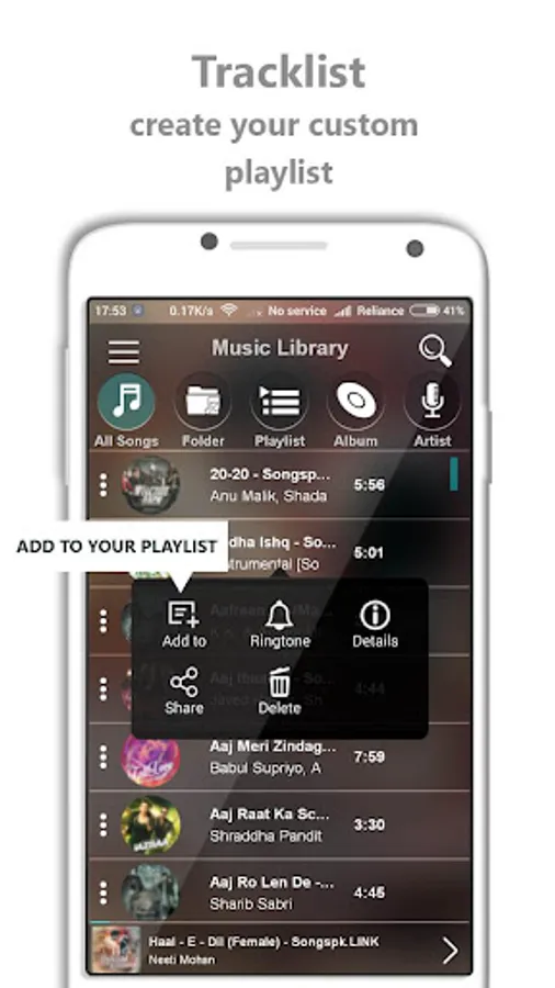 ☆☆ Make unlimited playlist of your favorite song and Song can be set as ringtone directly.