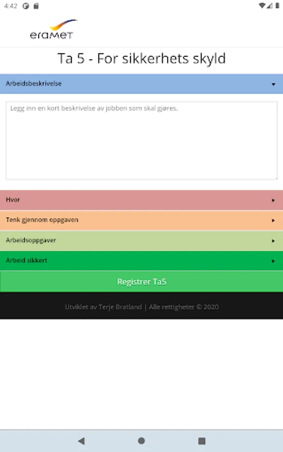 Digital version of the Take 5 booklet used on the Eramet Norway Sauda plant