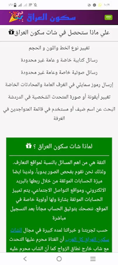 Sukoon Iraq chat is an Arabic chat for communication between different spectrums, with features and paid memberships