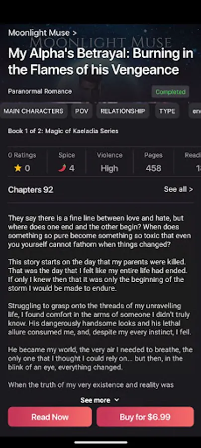 Our app is specifically created for romance lovers, catering to all subgenres, tropes, tags, and triggers that stoke your enthusiasm for love stories. With Eratu, experience the world of romance like never before.