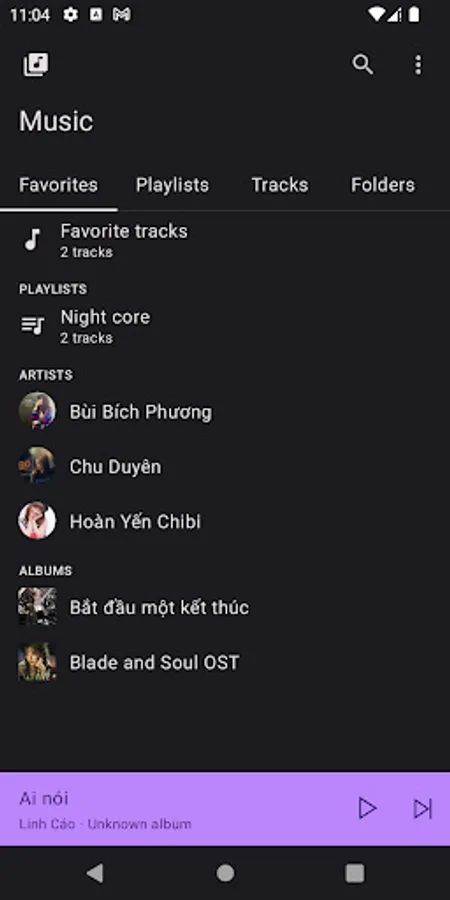 Manage music by Tracks, Favorites, Artists, Albums, Genres, Playlist and Folders. Sort music by track number, title, date added, artist or album.