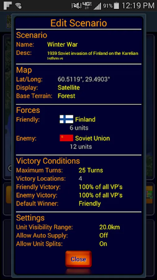 The app's included scenarios are ready to play (either side)...all of them built just using the Wargame Constructor app.