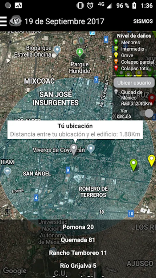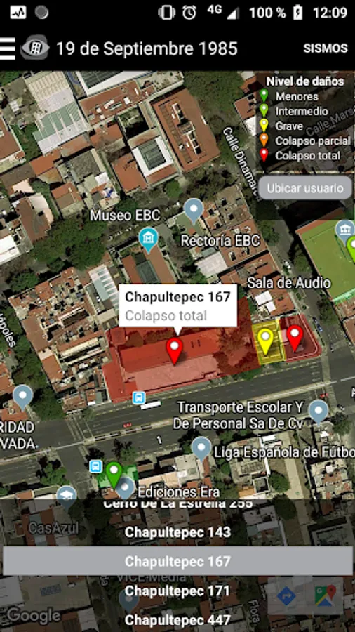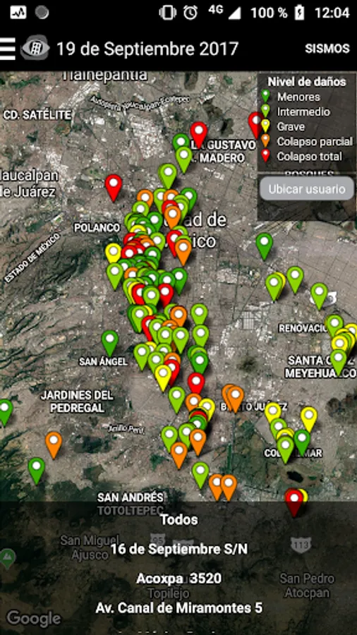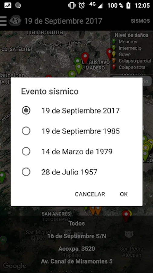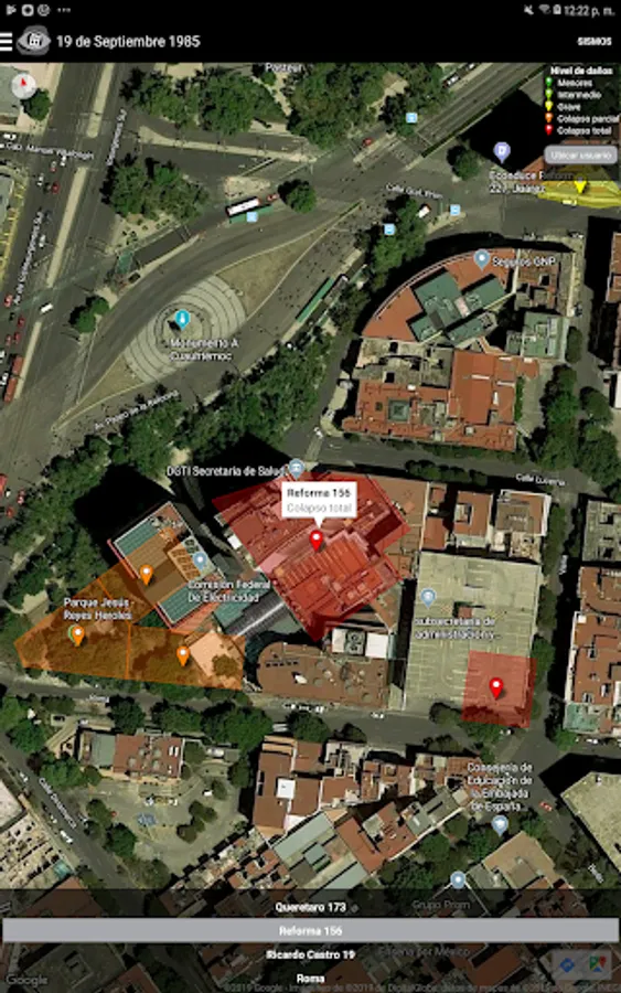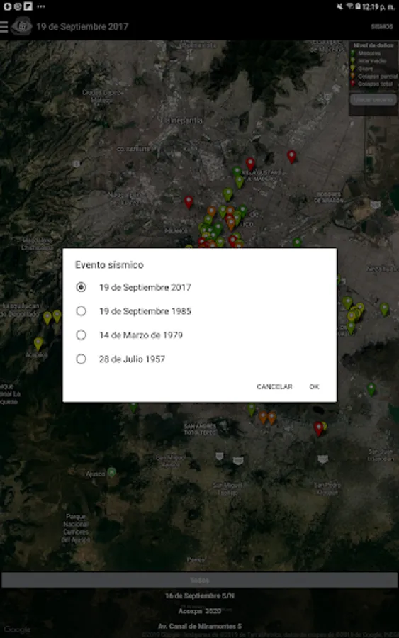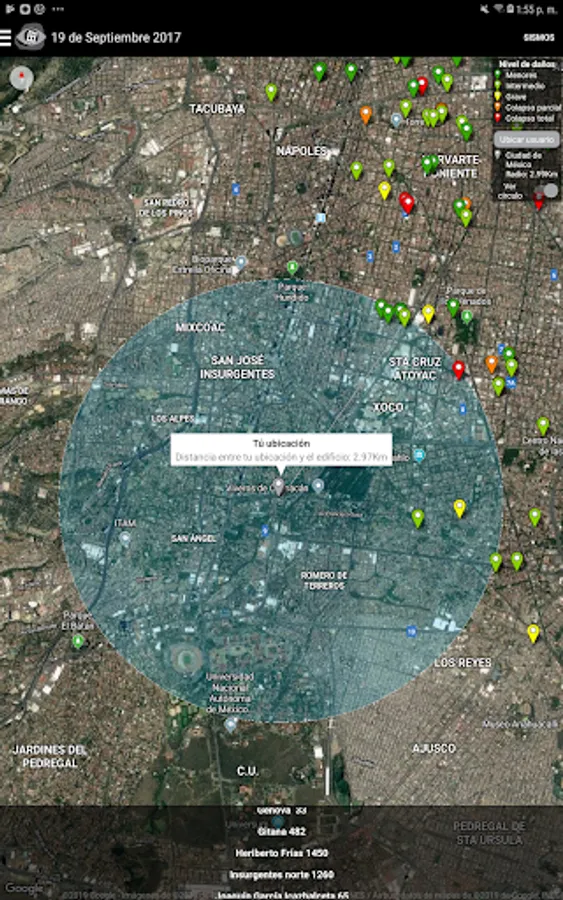Visualizer of damage to buildings in Mexico City due to the seismic events of 1957, 1979, 1985 and 2017.